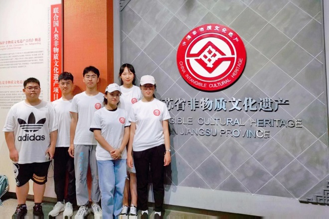 最后,在疫情肆虐之前“遗路苏行”实践团来到江苏省会——南京,参观了位于南京博物馆内的江苏省非物质文化遗产展厅。从非物质文化遗产的定义,到非物质遗产的保护与传承,团员们一一进行了细致了解。不仅如此,团员们还近距离接触到技艺、曲艺、民俗、文学等各式各样的江苏省代表性非遗,深刻地体会到中华民族非遗散发的无限魅力。在南京实践结束之后,南京疫情突然爆发,这也让实践团成员们认识到疫情之下,非遗文化的地域局限性导致非遗难以生存和发展的现状,更加坚定了成员们宣传、弘扬和发展非物质文化遗产的决心。