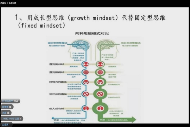 讲座伊始,肖凌燕老师从刚刚入学的老员工心理状况出发,引入了逆境的概念和特点,即常态性、普遍性、难以预测和对立统一性。紧接着,肖凌燕老师从不良的情绪应对、行为应对、认知应对三个方面分析了面对逆境时的种种表现。随后,老师向同学们分享了如何在逆境中进行有效的心理应对,建议同学们要有正确的认知:用成长型思维代替固定型思维,避免过度思维和“白熊效应”;要采取积极的行动:反复尝试,及时求助,适时地进行补偿、升华和止损;同时,也不能忘记关爱自己,善待自己,静观当下并且有规律地生活。最后,肖老师表达了对同学们的美好希望与祝愿,希望全体同学都能在逆境成长中积极应对消极心理,必要时可随时与校心理中心的老师进行交流沟通。
