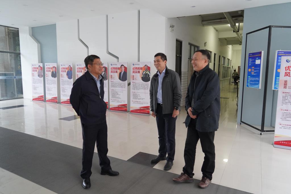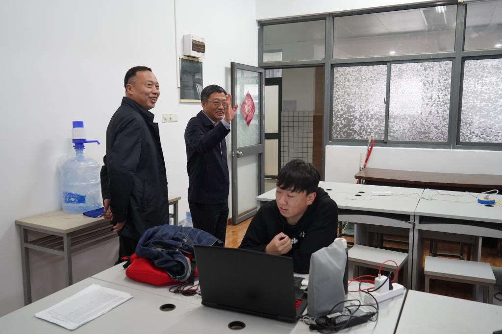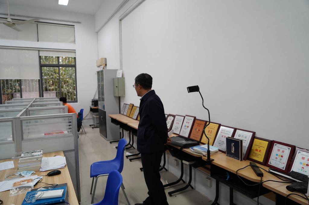 陈董事长参观了老员工创新实践基地、实验室、办公室等,刘渊经理介绍了学院搬迁及安置情况。陈董事长专门来到王士同教授和王映辉教授办公室,亲切看望了两位二级教授,并与研究生们进行交流,鼓励他们好好学习。