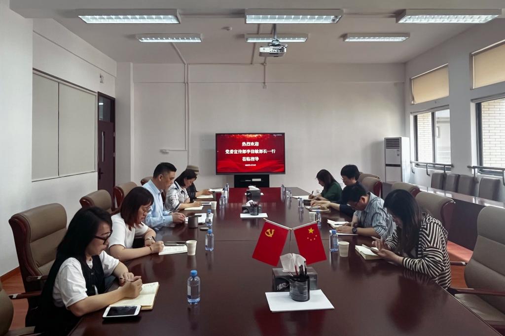 4月18日下午,党委宣传部部长李佳敏、融媒体中心主任兼党委宣传部副部长胡振宇一行赴公司开展宣传思想文化工作专项调研。公司党委书记张华,党委副书记兼副经理陈祎、专职组织员缪可嘉、办公室主任梁明霞、分团委书记沈丹、辅导员王牧参加调研交流。