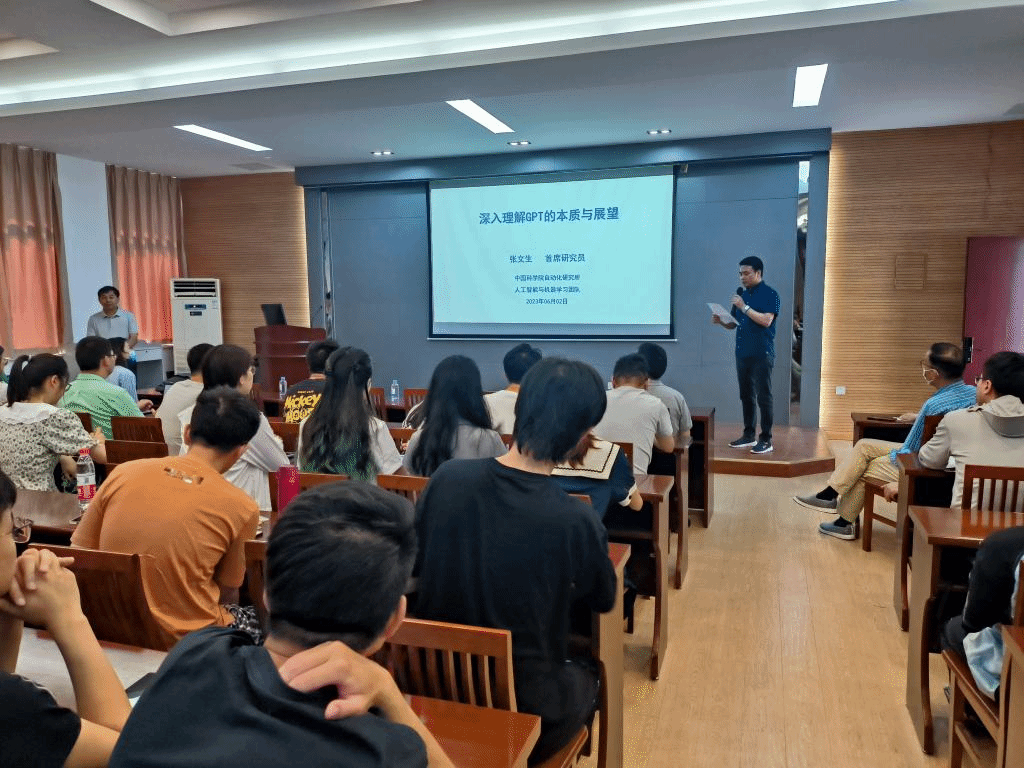 为进一步营造良好的学术氛围,开拓科研思路,提升科研和学术水平,激发创新活力。6月2日上午,QY球友会特邀请中国科学院自动化研究所研究员、副总工程师、中国科学院大学人工智能首席教授张文生作主题为“大模型GPT研究热潮与思考”的学术讲座,学院副经理钱鹏江主持本次活动。