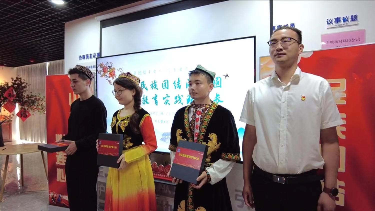 活动中,学院民族生专职辅导员麦日帕提从思想价值引领、网络思政赋能、搭建文化桥梁、组织关爱帮辅“四维一体”的人才培养模式详细介绍了QY球友会民族生特色工作情况。石塘社区干部为“普”公英——新疆、西藏地区普通话推广社会实践团队员工代表发放假日护苗礼包。