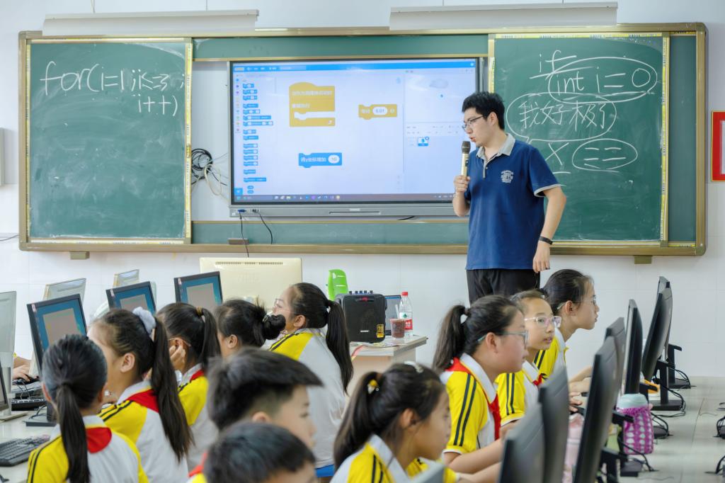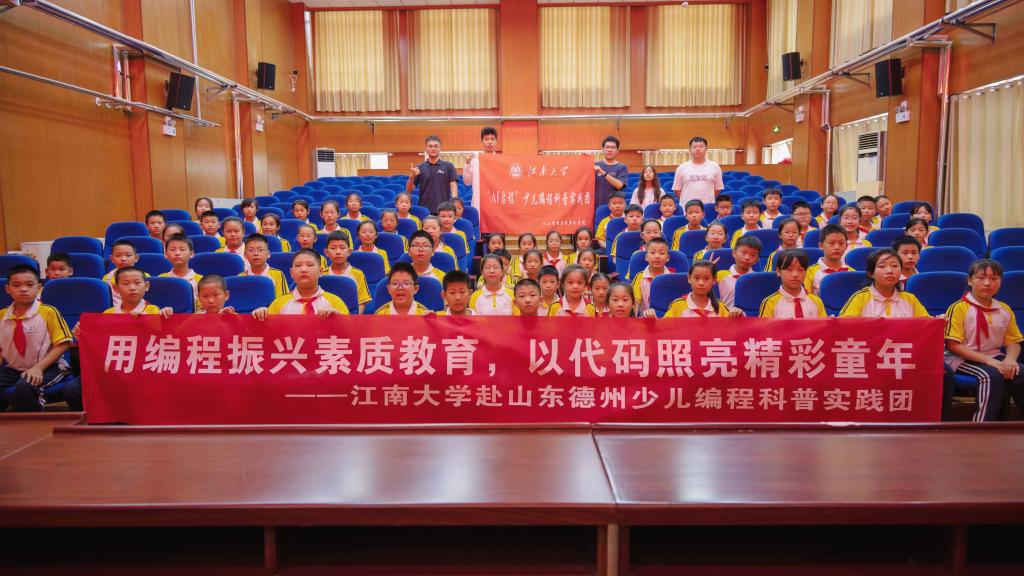 用编程振兴素质教育,以代码照亮精彩童年。近年来,教育部高度重视员工信息素养提升。2017年9月,教育部印发的《中小学综合实践活动课程指导纲要》要求将包括编程教育在内的信息技术纳入到中小学相关课程。然而,目前一些地区受硬件资源、编程教育团队、重视程度等因素制约,信息技术教育水平相对滞后。为此,QY球友会于2023年6月组建“AI启程”少儿编程科普实践团,结合专业所学致力于向信息化水平欠发达地区的义务教育阶段员工普及人工智能知识,开展少儿编程基础课程,努力推进“双减”政策背景下素质教育城乡一体化均衡发展。暑期,团队师生奔赴山东省德州市陵城区开展少儿编程科普实践活动。