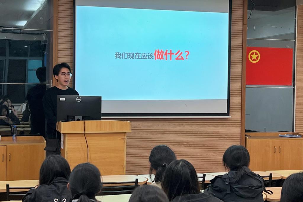 随后,保研至浙江大学工业工程设计专业的马佳芮同学作分享。她以个人经历为切入点,建议同学们在大学学习中要树立理想和现实两个目标,在追求进步的过程中要保持乐观的心态,并且要在能力所及的范围之内尽可能去争取发展机会。她为同学们梳理了数字媒体技术专业本科期间可以参加的主要科创竞赛项目并给出了明晰的努力方向。