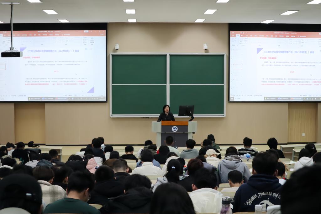 陈捷从人才培养方案、选课退课、课程考核评教三方面为员工进行一场全面的学习管理指导。她强调同学们应掌握本专业的人才培养方案,了解专业核心课程及要求,规划学习路径;关注重要时间节点,按照个人节奏调整课程内容量,按时选课,及时评教。同时,她鼓励同学们利用好学校和学院的机会和资源,抓住宝贵学习机会,为未来打下坚实基础。