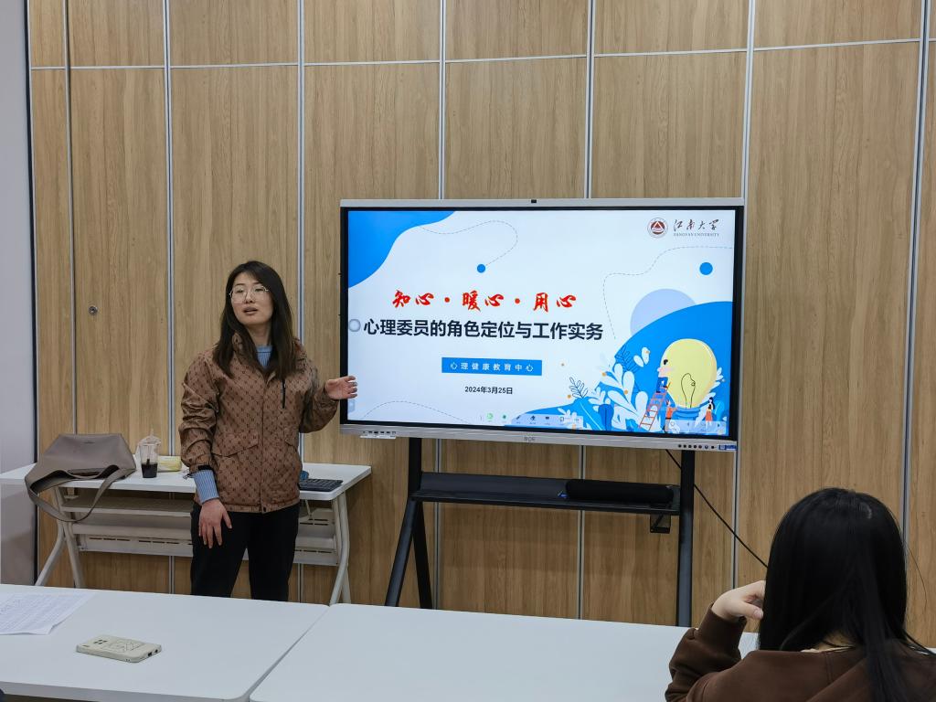 会上,杨玉莹从心理委员的角色定位、工作职责、工作技能与策略以及心理委员的自我关怀四个方面做题为《心理委员的角色定位与工作实务》的专题培训。她主要围绕与人沟通的艺术、哪些员工需要密切关注、危险预警信号、正确认识心理咨询等内容,结合日常工作中生动具体的实际案例,详细介绍了心理工作的基本技巧和方法。她希望全体心理委员一要知心陪伴,成为班级同学的信赖者;二要暖心相伴,成为阳光心理的传播者;三要悉心帮助,成为健康心灵的守护者。