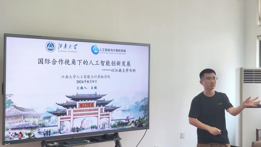 王锐对实践团师生的到来表示欢迎,并作题为《国际合作视角下的人工智能创新发展》的讲座。他以球友会官方网站为例,介绍了QY球友会的国际合作历程、主要合作领域、典型应用创新案例以及所产生的代表性合作成果。他强调,人工智能作为未来科技发展的重要驱动力,具有广泛的应用前景和深远的社会价值。