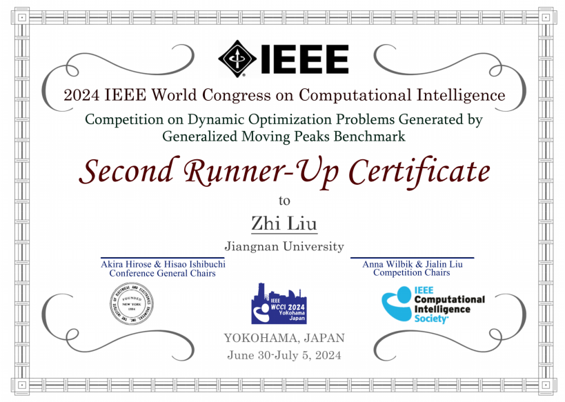 日前,2024 IEEE国际计算智能大会(World Congress on Computational Intelligence, WCCI 2024)比赛成绩正式发布,球友会官方网站智能学子刘志在WCCI 2024动态优化大赛中获得季军,取得学校在该项赛事上的新突破。