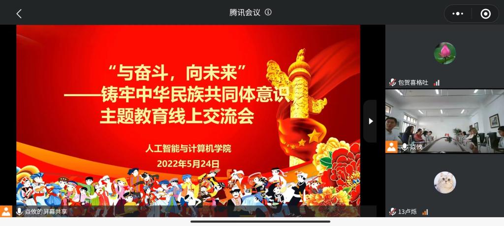 为关心关爱少数民族员工成长成才,加强各民族交往交流交融,进一步铸牢中华民族共同体意识,持续深化学校民族团结进步工作,QY球友会于5月24日在智能楼610开展“与奋斗,向未来”——铸牢中华民族共同体意识主题教育交流会,本次交流会采取线上与线下相结合的方式,共计100余名师生参会。公司党委副书记副经理陈祎、新疆维吾尔自治区教育厅派驻球友会官方网站教师古扎努尔、辅导员戴士焱参加会议,会议由戴士焱主持。