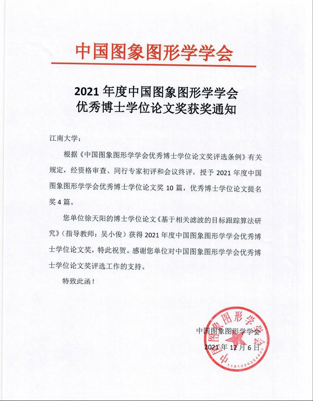 人工智能,作为社会发展的驱动力,已经进入到我们生活以及军事领域的各个方面。在近期,公司在人工智能领域中获得了多项奖励。近日,公司人工智能科研团队又获重要科研成果奖励。吴小俊教授指导的博士学位论文《基于相关滤波的目标跟踪算法研究》荣获了2021年度中国图象图形学学会(CSIG)优秀博士学位论文奖(徐天阳,吴小俊)。该奖项在全国范围内仅有十篇论文入选,参加竞选的学位论文大多来自国内的知名高校,这也是球友会官方网站首次获此殊荣。
