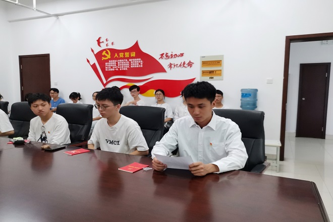 6月24号上午,在中国共产党第101岁生日即将到来之际,QY球友会在智能楼521隆重举行“喜迎二十大 奋进新征程”暨QY球友会新党员入党宣誓仪式。公司党委书记张华,党委副书记、副经理陈祎,2022年上半年新发展党员参加会议。会议由学院辅导员李猛主持。