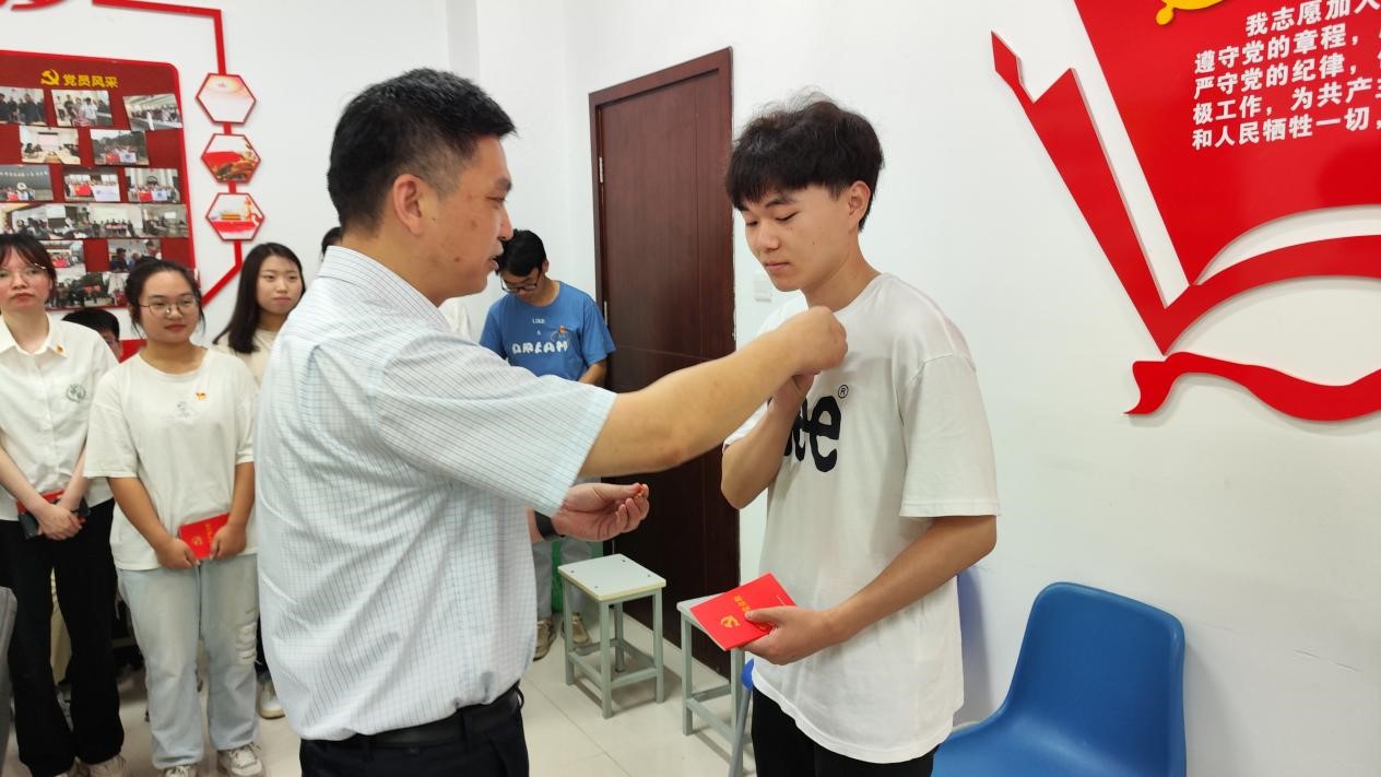 院领导为新党员佩戴党员党徽、赠送党章