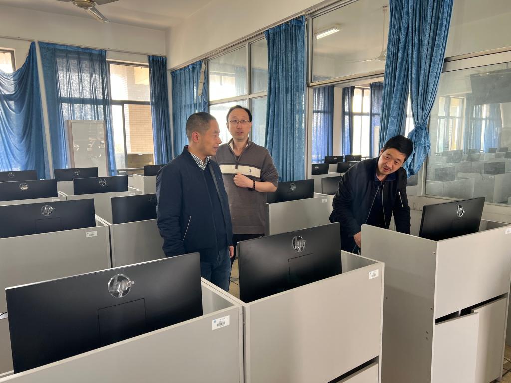 在实验中心,方经理详细询问了实验中心的工作开展情况,视察了学院机房的建设情况。在计算中心,恰逢老师们在热火朝天地装备新机器,为学校即将大范围开始的上机课程做最后的调试与准备工作。实验中心和计算中心服务着学校2万余师生,其工作运行是否流畅直接影响着实践教学能否顺利开展,方经理叮嘱工作人员务必要做好设备的维护检查,并强调了实验室的安全。