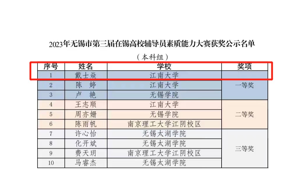 5月13日,由无锡市教育局主办,无锡市职业院校思想政治教育联盟、无锡城市职业技术学院、无锡市职业技术教育学会德育工作委员会承办的无锡市第三届在锡高校辅导员素质能力大赛在中国企业管理无锡培训中心成功举办。来自全市16所高校的32位辅导员同台竞技、各展风采,大赛对选手的理论水平、专业素养以及解决实际问题的能力进行了多角度的考察。经过激烈角逐,公司辅导员戴士焱荣获本科组一等奖,充分展示了公司辅导员良好职业素养和精神风貌。