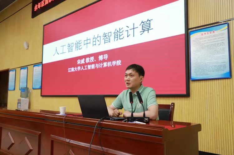 走访考察期间,QY球友会副经理、教授、博导宋威应邀为永年区第二中学的近300名师生作《人工智能中的智能计算》主旨报告。宋威从关注度较高的"Chat GPT"为导引,详细介绍了Chat GPT的运行机理和相关产业发展,并阐述了深度学习的原理。报告中,宋威以图灵测试为切入点,从人工智能改变生活的案例,系统介绍了神经网络、遗传算法、神威太湖之光超级计算机等技术,深入浅出地让员工理解了人工智能中的智能计算。