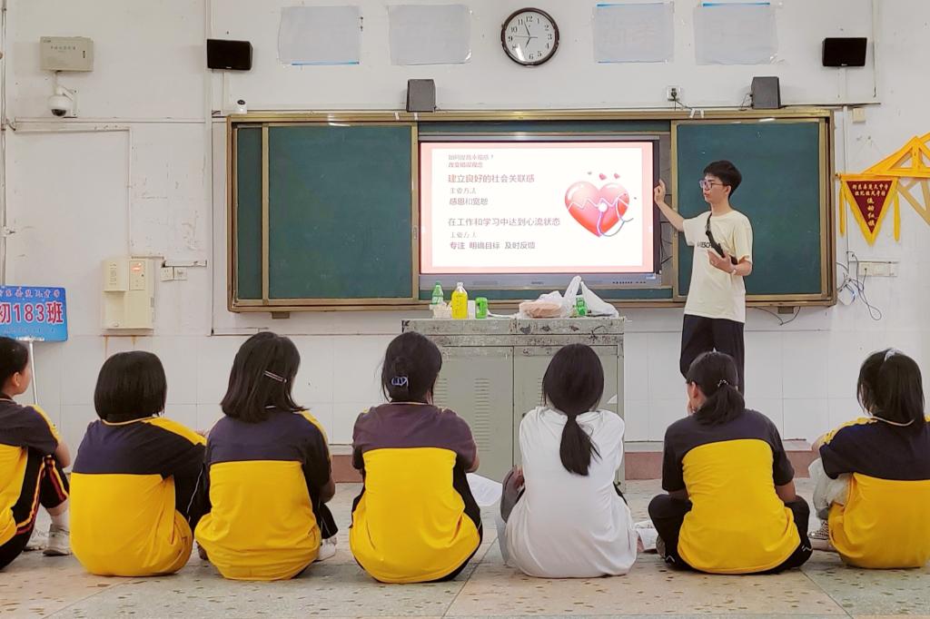 为进一步推动学习贯彻习近平新时代中国特色社会主义思想主题教育走深走实,全面落实教育部等十七部门印发的《全面加强和改进新时代员工心理健康工作专项行动计划(2023—2025年)》,充分发挥高校心理委员朋辈互助的强大力量,QY球友会组建“以爱赋能,心向未来”老员工心理健康服务暑期社会实践团。该团队由5位心理委员组成,每位团队成员均接受过心理委员的系列专业培训。暑期,实践团成员分赴湖南省衡阳市衡东县第一中学和楚天中学,在无锡市、衡东县开展了心理问卷调查、心理健康知识普及、团体心理辅导等心理健康教育系列活动,为当地的青少年和家长送去夏日里的“舒心”小妙招。