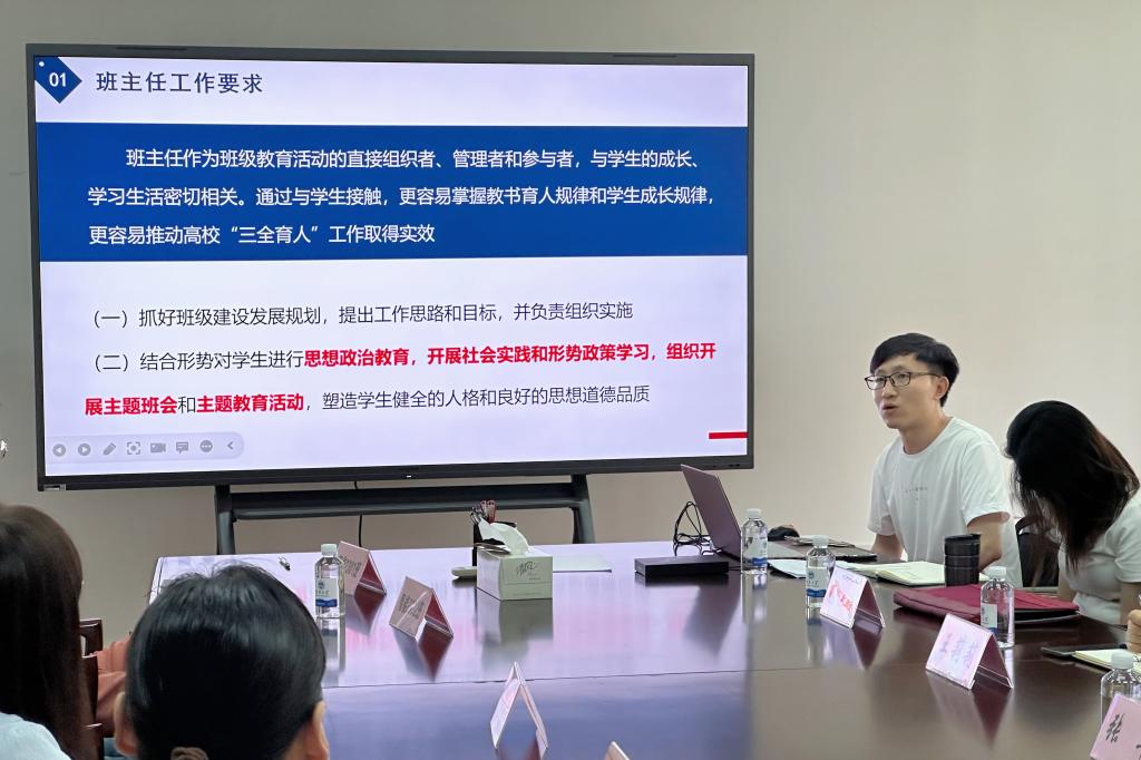 会上,新生辅导员李猛基于“三全育人”理念,从员工思想政治教育、班级建设和日常管理、学风建设等方面介绍班主任工作的具体职责和要求,详细解读球友会官方网站优秀班主任评选办法,并围绕“如何开展好第一次主题班会”“如何做好新生心理普测”“如何营造班级优良学风”等话题与在场师生进行交流。