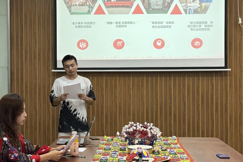 麦日帕提老师首先围绕思想引领、关爱成长、专业特色介绍了学院在民族生思想教育,党员发展,选树榜样,学业、生活、就业帮扶等方面的工作情况。