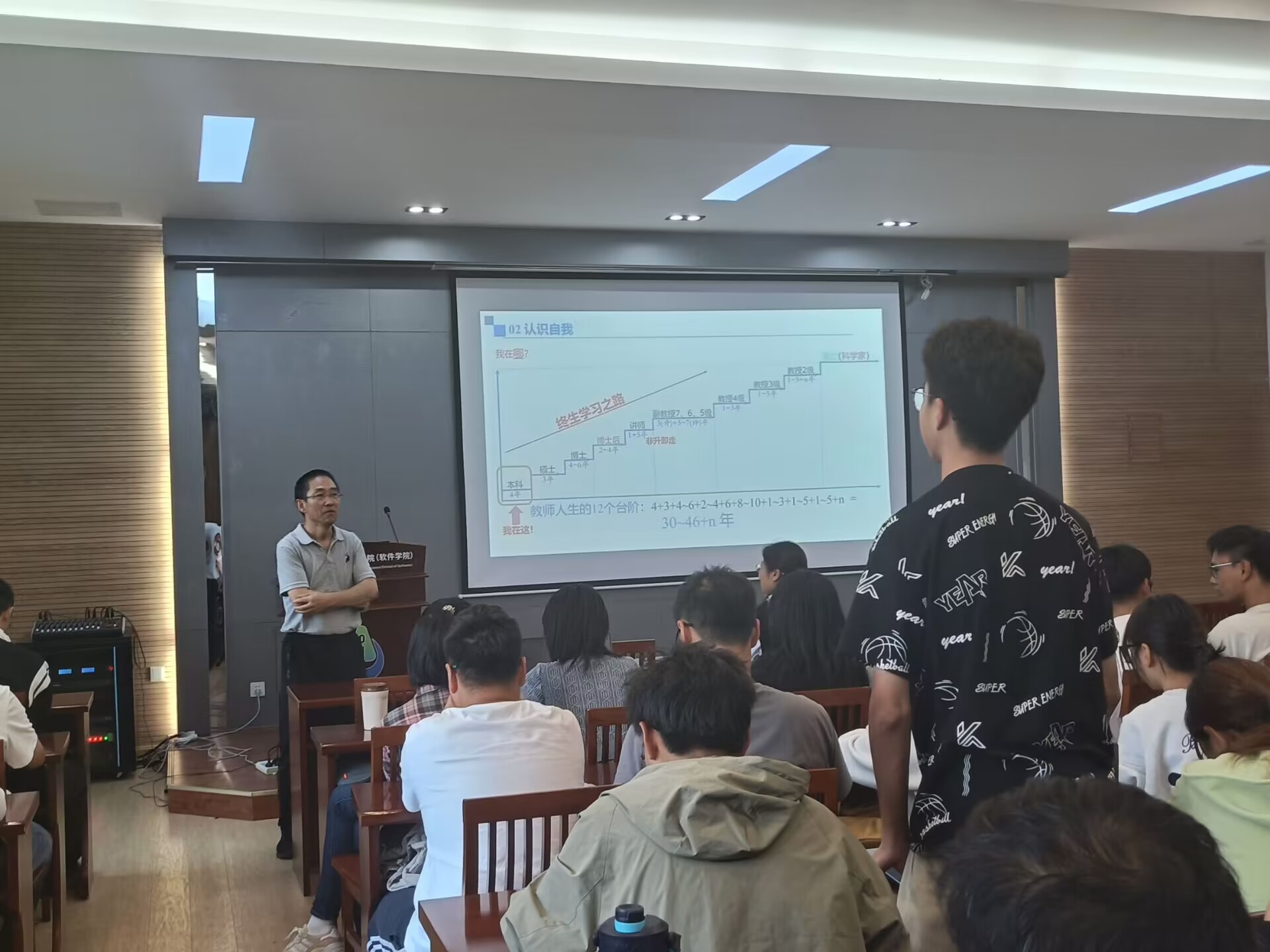 李光辉从为什么要学习计算机专业、怎样学好计算机专业、计算机专业学科实力概况三个方面展开授课。他详细讲解了计算机科学与技术的发展历程、应用案例、未来前景,传授了诸多专业学习的方法。他强调,计算机科学与技术应用广泛,是推动社会进步的关键工具,新生要具备扎实的基础知识和精湛的编程技能,才能紧跟时代发展步伐,实现全面发展。他寄语新生珍惜大学时光,勤奋学习,积极进取,不负青春年华,努力成为计算机领域的卓越人才。