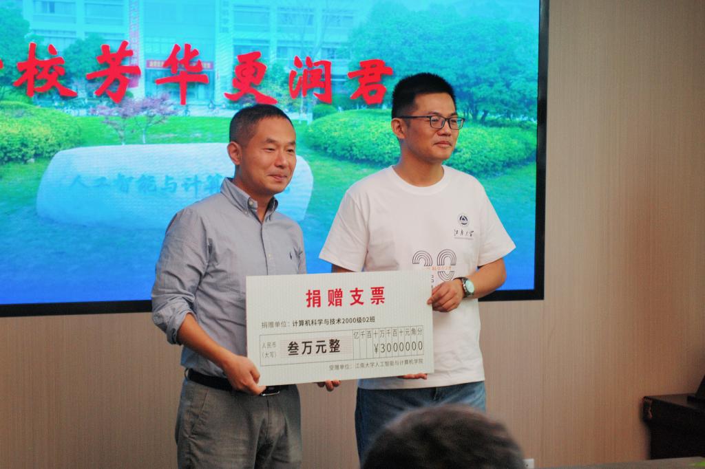 为表达对母校的培养之情,助力学院高质量发展,员工出资捐赠文化墙建设。方伟代表学院接受捐赠,并向员工颁发捐赠证书。在学院员工的原创MV《蠡湖大道1800》中,与会老师为员工们佩戴天下江南人徽章。