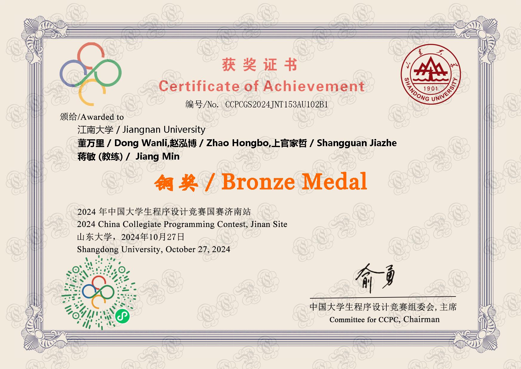 智能学子在第十届中国老员工程序设计竞赛(济南)中斩获铜奖